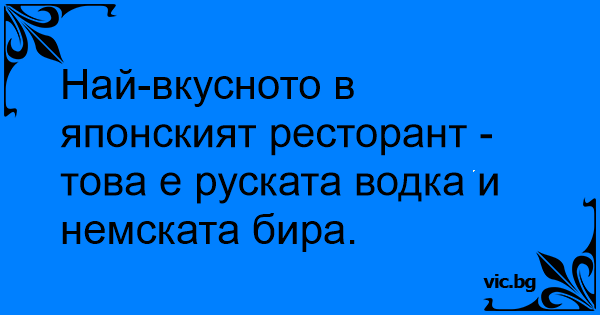 Най-вкусното в японският ресторант - това е руската водка и немската бира.