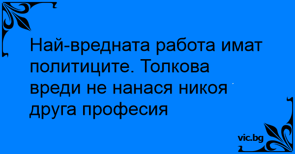 Най-вредната работа имат политиците. Толкова вреди не нанася никоя друга професия
