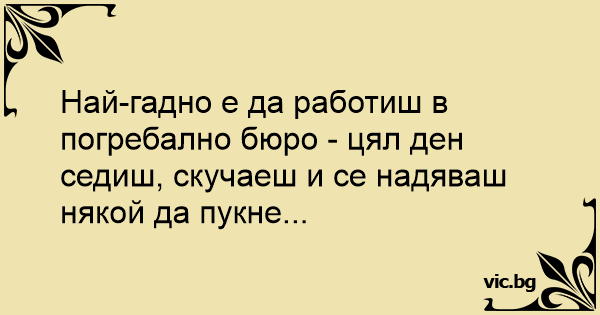 Най-гадно е да работиш в погребално бюро - цял ден седиш, скучаеш и се надяваш някой да пукне...