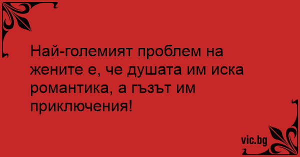 Най-големият проблем на жените е, че душата им иска романтика, а гъзът им приключения!
