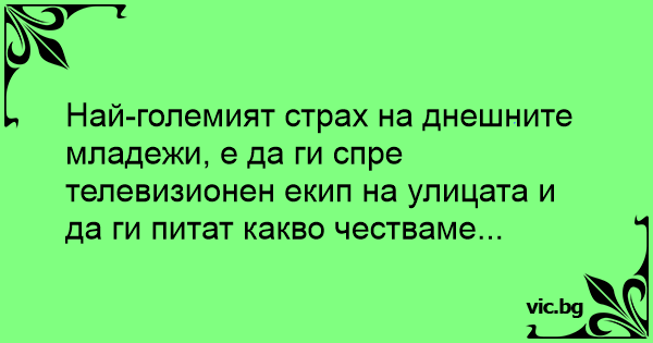 Най-големият страх на днешните младежи, е да ги спре телевизионен екип на улицата и да ги питат какво честваме...