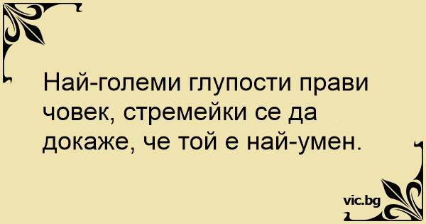 Най-големи глупости прави човек, стремейки се да докаже, че той е най-умен. 23 0 0 Кратки вицове, 1000+ кратки вица
