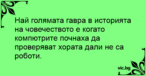 Най голямата гавра в историята на човечеството е когато компютрите почнаха да проверяват хората дали не са роботи.