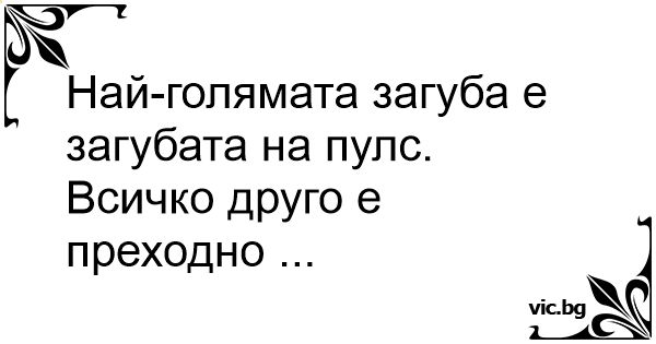 Най-голямата загуба е загубата на пулс.