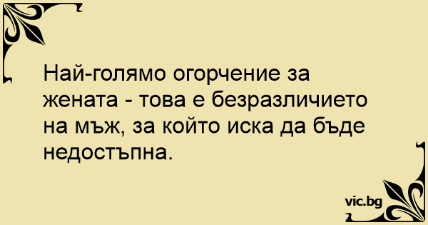 Най-голямо огорчение за жената - това е безразличието на мъж, за който иска да бъде недостъпна.