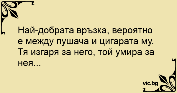 Най-добрата връзка, вероятно е между пушача и цигарата му.