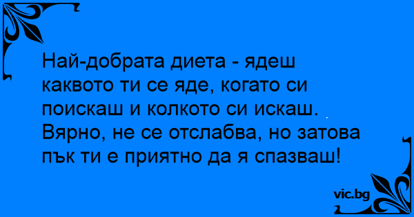 Най-добрата диета - ядеш каквото ти се яде, когато си поискаш и колкото си искаш.
