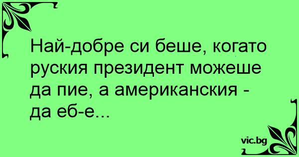 Най-добре си беше, когато руския президент можеше да пие, а американския - да eбe...