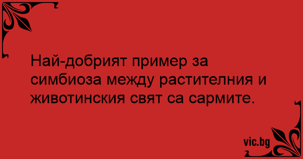 Най-добрият пример за симбиоза между растителния и животинския свят са сармите.