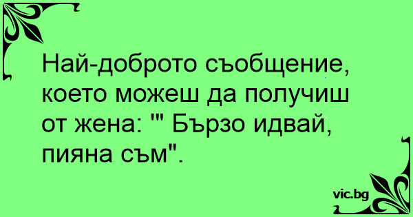Най-доброто съобщение, което можеш да получиш от жена: '" Бързо идвай, пияна съм".