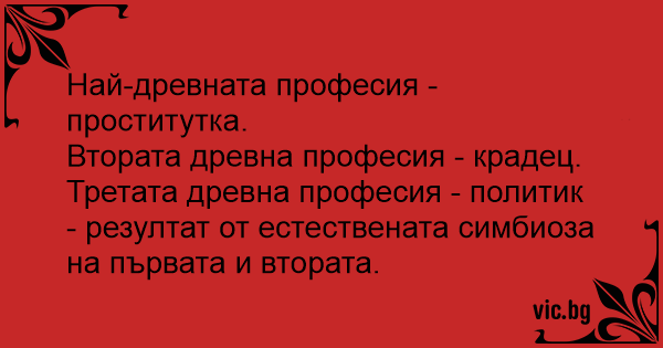 Третата древна професия - политик - резултат от естествената симбиоза на първата и втората.