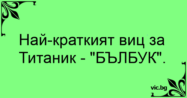 Най-краткият виц за Титаник - "БЪЛБУК".