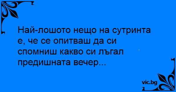 Най-лошото нещо на сутринта е, че се опитваш да си спомниш какво си лъгал предишната вечер...