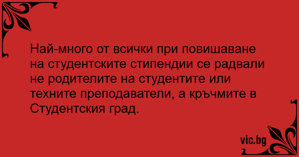 Най-много от всички при повишаване на студентските стипендии се радвали не родителите на студентите или техните преподаватели, а кръчмите в Студентския град.