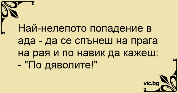 Най-нелепото попадение в ада - да се спънеш на прага на рая и по навик да кажеш: