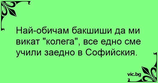 Най-обичам бакшиши да ми викат "колега", все едно сме учили заедно в Софийския.