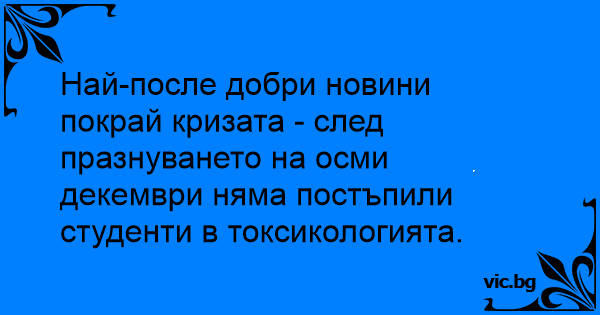 Най-после добри новини покрай кризата - след празнуването на осми декември няма постъпили студенти в токсикологията.