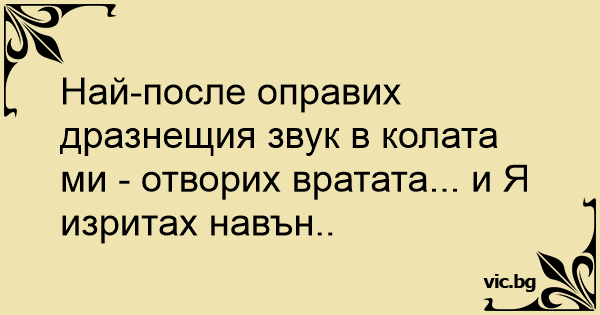 Най-после оправих дразнещия звук в колата ми - отворих вратата... и Я изритах навън..