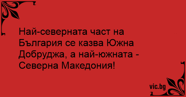Най-северната част на България се казва Южна Добруджа, а най-южната - Северна Македония!