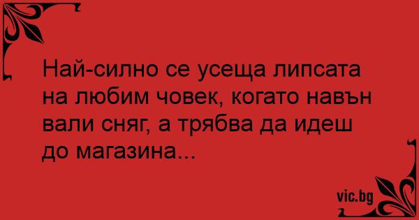Най-силно се усеща липсата на любим човек, когато навън вали сняг, а трябва да идеш до магазина...