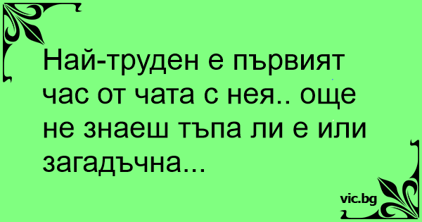 Най-труден е първият час от чата с нея.. още не знаеш тъпа ли е или загадъчна...