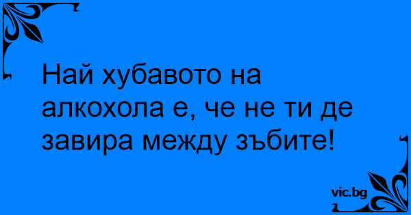 Най хубавото на алкохола е, че не ти де завира между зъбите!