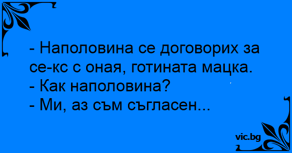 - Наполовина се договорих за cеkc с оная, готината мацка.