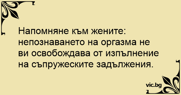 Напомняне към жените: непознаването на opгaзma не ви освобождава от изпълнение на съпружеските задължения.