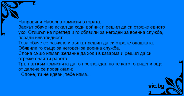 Тръгнал към комисията да го преглеждат, но те като го видели още от далече се провикнали: