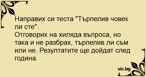 Отговорих на хиляда въпроса, но така и не разбрах, търпелив ли съм или не. Резултатите ще дойдат след година.