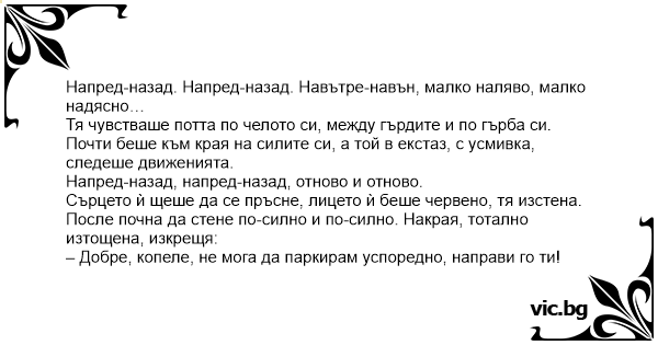 Напред-назад. Напред-назад. Навътре-навън, малко наляво, малко надясно…