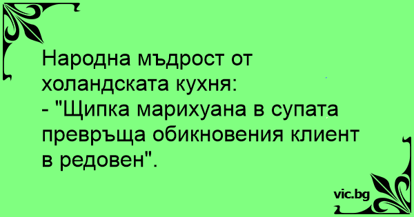 - "Щипка марихуана в супата превръща обикновения клиент в редовен".