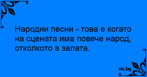 Народни песни - това е когато на сцената има повече народ, отколкото в залата.