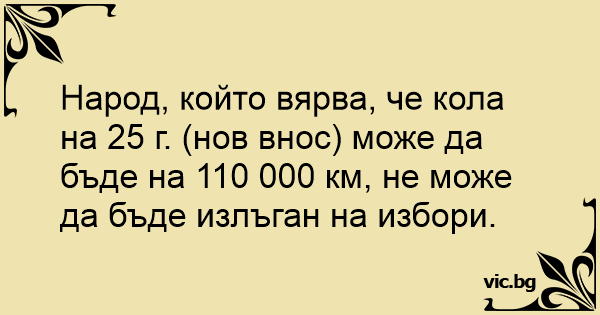 Народ, който вярва, че кола на 25 г. (нов внос) може да бъде на 110 000 км, не може да бъде излъган на избори.