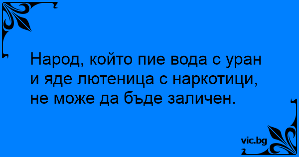 Народ, който пие вода с уран и яде лютеница с наркотици, не може да бъде заличен.