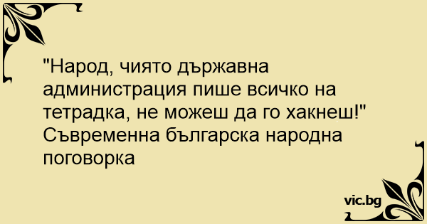 "Народ, чиято държавна администрация пише всичко на тетрадка, не можеш да го хакнеш!"