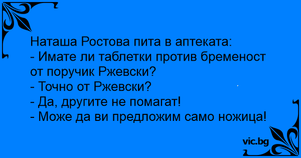 - Имате ли таблетки против бременост от поручик Ржевски?