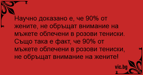 Научно доказано е, че 90% от жените, не обръщат внимание на мъжете облечени в розови тениски.