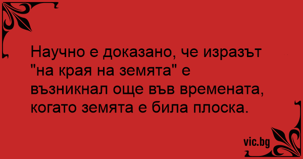 Научно е доказано, че изразът "на края на земята" е възникнал още във времената, когато земята е била плоска.