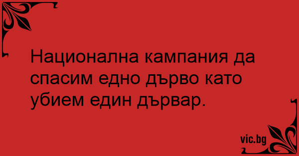 Национална кампания да спасим едно дърво като убием един дървар.