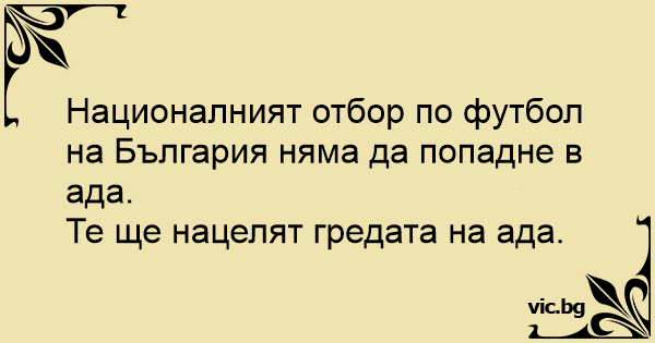 Националният отбор по футбол на България няма да попадне в ада.