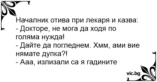 - Докторе, не мога да ходя по голяма нужда!