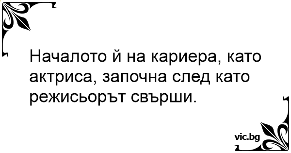 Началото й на кариера, като актриса, започна след като режисьорът свърши.