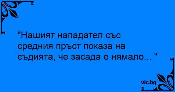 "Нашият нападател със средния пръст показа на съдията, че засада е нямало... "