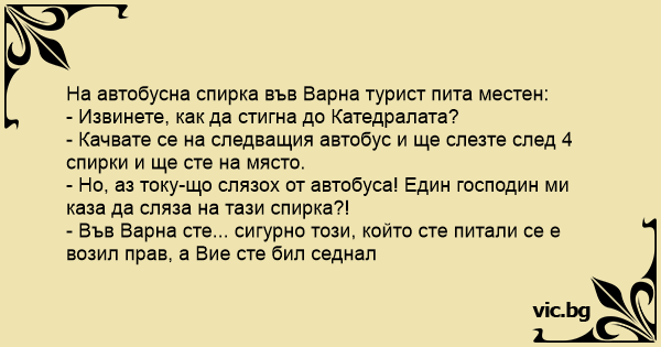 - Във Варна сте... сигурно този, който сте питали се е возил прав, а Вие сте бил седнал