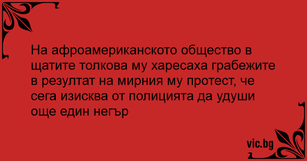 На афроамериканското общество в щатите толкова му харесаха грабежите в резултат на мирния му протест, че сега изисква от полицията да удуши още един негър