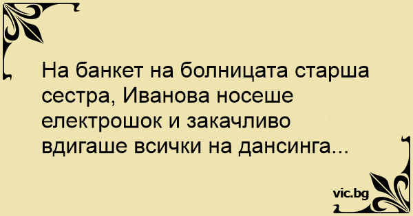 На банкет на болницата старша сестра, Иванова носеше електрошок и закачливо вдигаше всички на дансинга...