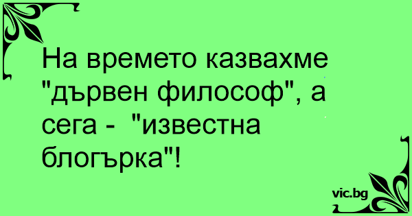 На времето казвахме "дървен философ", а сега - "известна блогърка"!