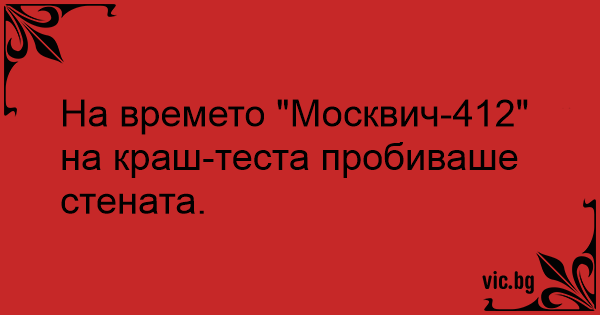 На времето "Москвич-412" на краш-теста пробиваше стената.