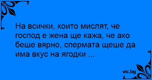 На всички, които мислят, че господ е жена ще кажа, че ако беше вярно, cпepmata щеше да има вкус на ягодки ...